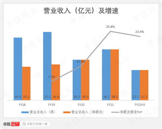 业务规模自2018年以来呈现加速增长态势,营收增速不断走高,2021年创下近年来新高38.1亿元。
