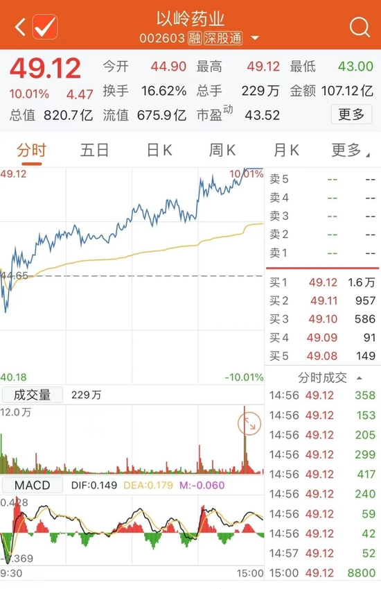 截至7日收盘,以岭药业尾盘涨停,收于49.12元。今年以来,以岭药业股价涨幅已超154%。