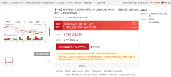浏览京东拍卖的行家,瞥到一起正在进行的项目:“辽宁曙光汽车集团股份有限公司(简称:曙光股份)97895000股股票”。