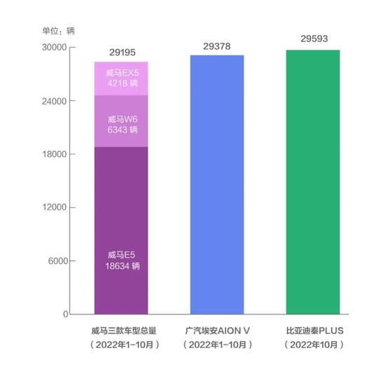 更惨烈的是,10个月里,威马三款车总销量才等于AION(埃安)V一款车销量仅接近比亚迪秦PLUS10月单月的销量