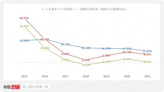 净利率在2018年止跌,但是如果剔除日立电梯的投资收益影响,近几年调整后的净利率整体较低,部分年份甚至低于银行理财。