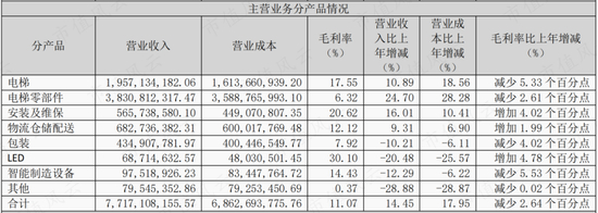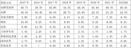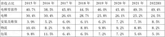 2022年上半年该业务增速为70.7%,而同期电梯业务出现了明显下滑。