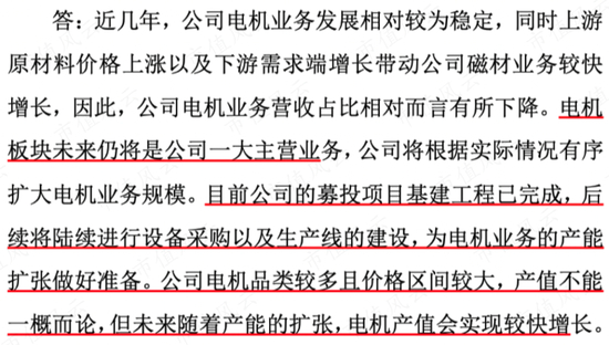 但电机依然是公司的主业,公司未来还要扩产电机生产规模。