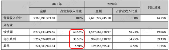 (1)汝铁硼,即磁材业务,2021年收入为22.77亿;