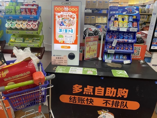 在物美超市,如果你想自助结账,则必须下载多点APP。
