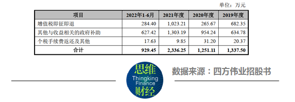 图表3:四方伟业报告期内的补助及退税