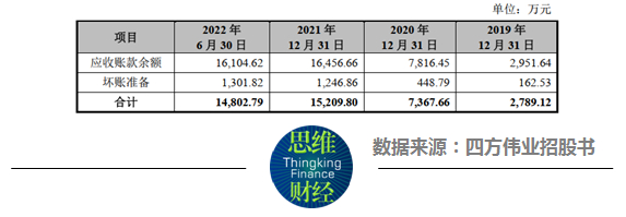 招股书显示,四方伟业的终端用户主要集中在政府、军工、能源、交通、金融部门或行业。由于此类客户的验收周期较长,导致四方伟业的应收账款金额和占比较高,报告期各期末,四方伟业的应收账款分别为0.28亿元、0.74亿元、1.52亿元和1.48亿元,应收账款金额在总资产中的占比从2019年的9%增至2022年上半年的29%。