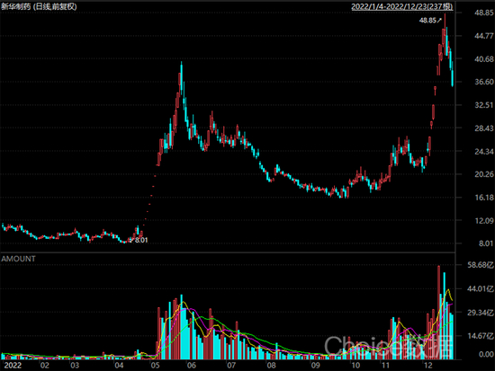 受此带动,新华制药股价年末再度飙涨,股价在12月5日至16日期间的10个交易日内收获8个涨停,区间涨幅达116%,并再创历史新高。