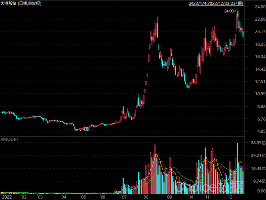 在8月见顶后,大港股份股价一度快速回撤,在不到两个月内跌去近50%。但随着四季度半导体板块热度回升,资金的“妖股记忆”再度被唤醒。10月20日至12月15日,大港股份在41个交易日内收获10个涨停,区间涨近70%并再创年内新高。