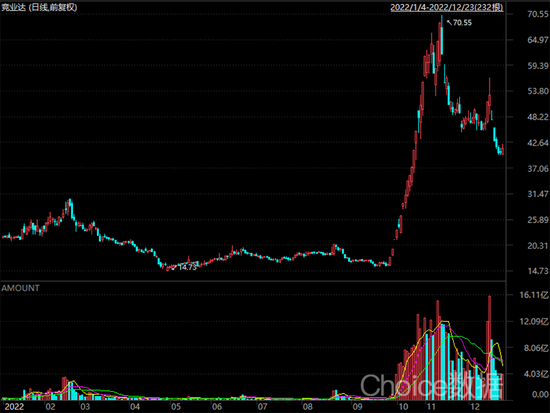 但与不少“妖股”相似,竞业达在股价大幅攀升后,公司股东纷纷抛出减持计划。11月26日,竞业达总经理、副总经理、监事会主席、董事会秘书等多名高管集体公布减持计划,理由均为“个人资金需求”。竞业达股价在见顶后也持续回撤,目前最新价已较11月高点跌去超过40%。