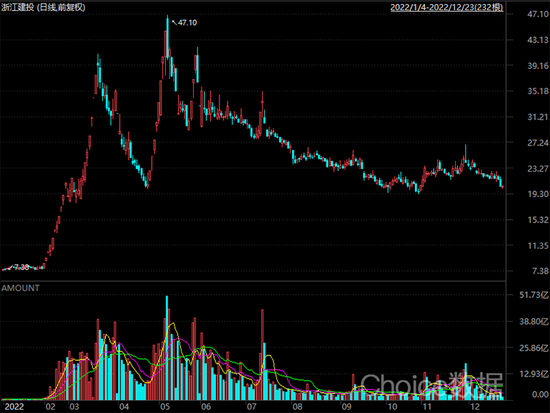 随着相关股东减持陆续落地,浙江建投股价见顶回落。截至目前,浙江建投股价已较当初高点回撤接近60%。