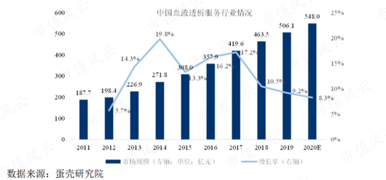 细分来看,其中透析服务(包括药品)市场规模占比在80%以上,而以透析机为主的透析产品市场规模则占比较小。
