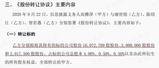 在沉寂了一年多后,高雅萍于2020年再次通过协议转让等方式增持,成为第一大单一股东。其中协议转让方式耗资1.7亿元,成本价为8.57元/股。