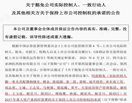而且当时并购亚洲制药的时候,实控人及一致行动人等还签署了关于保持上市公司控制权的承诺。