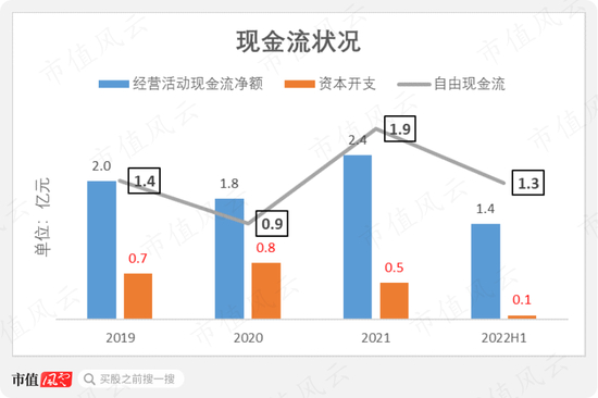 2019年以来,公司每期均能实现正数的经营活动现金流净额,截至2022年上半年末,公司已经通过经营活动实现了累计7.6亿元的资金净流入。