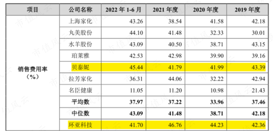 2021年,公司和贝泰妮的销售费用率分别为46.8%和41.8%。
