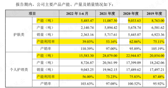 澳洲工厂投产使得公司的产能利用率进一步大幅下滑,2022年上半年,护肤类产品和个人护理类产品的产能利用率分别降至39%和56%。