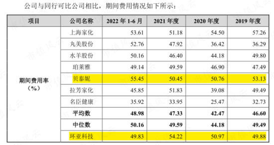 2021年,公司和贝泰妮的期间费用率分别为54.2%和50.4%。