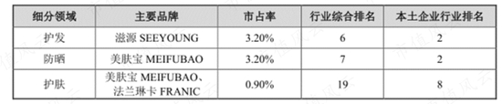 据披露,“滋源”和“美肤宝”在各自细分领域分别排名第6和第7,且在本土品牌中均排名第2。