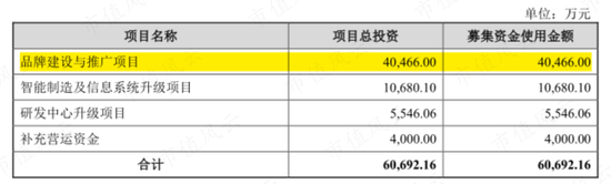 从披露来看,公司本次IPO拟募集资金6.1亿元,拟投资项目以4亿元的“品牌建设与推广项目”,说白了也就是“搞营销”。