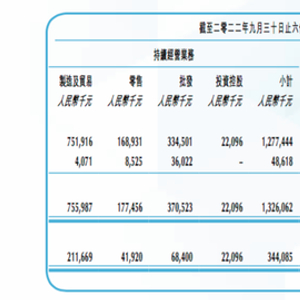 到2022财年上半年,利时集团控股制造及贸易(塑胶及五金家具用品)、零售(超市运营及物业租赁)、批发(酒类及中央空调等电器)业务分别实现营业收入7.55亿元、1.77亿元、3.71亿元,占总营收比重分别为58.9%、13.2%、26.2%。