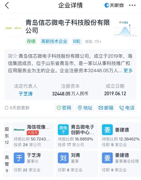 而青岛信芯微董事长于芝涛目前在海信视像担任董事兼总经理,青岛信芯微的监事张然然也在海信视像任监事。