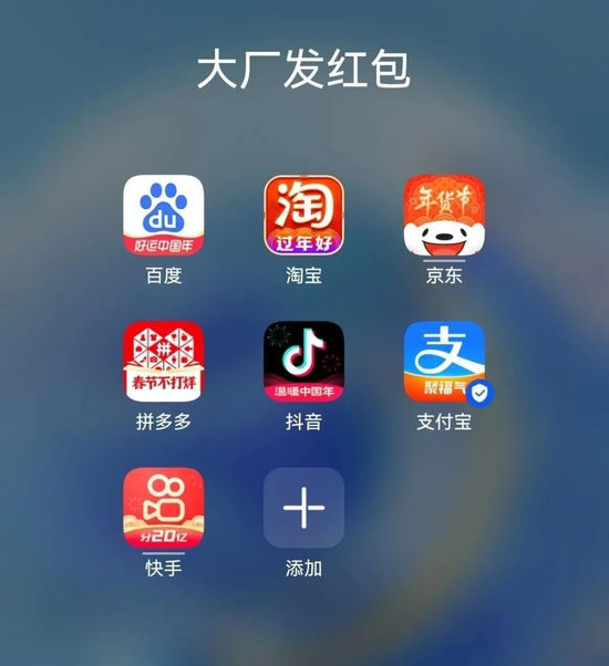 各大App的图标,也一改往年“分XX亿”的风格,以“春节不打烊”“年货节”“好运中国年”“聚福气”等标语为主,显得低调内敛了不少。