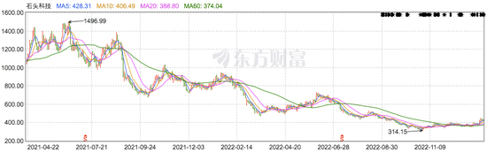 股份转让时,石头科技股价尚在高点,最高一度触及1496.99元/股(后复权),而后边一路震荡下跌,2021年12月之后,未再超过千元。