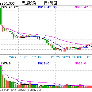 资料显示,天振股份于2022年11月14日登陆创业板,公司发行价为63元/股,上市首日,公司平开低走,最终收跌10.97%,出现破发。在此之后,公司股价继续下跌,股价最低曾下探至45.02元/股。
