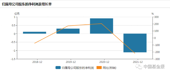 业绩方面,2021年前公司营收波动不大,其中2018年至2020年年均营收在8.4亿元左右,2021年出现小幅下滑,同比上年降幅3.05%;归母净利润方面则出现较大震荡。其中2020年实现归母净利润0.91亿元,同比增幅203.47%,2021年由盈转亏,亏损1.11亿元,同比降幅达221.22%。