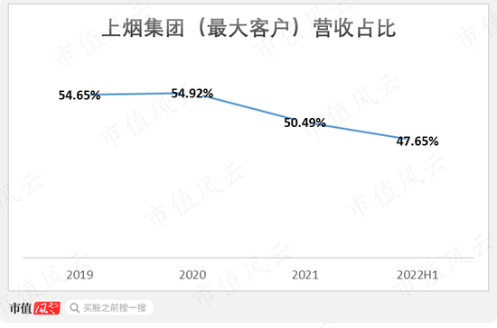 据披露,公司的“湖北中烟系”客户,从2019年的3家增加至2021年的5家,并在2022年上半年增至6家。
