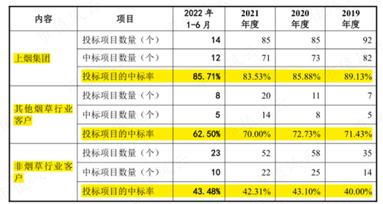 不过,公司投标中烟系客户项目的中标率,尤其是最大客户上烟集团的中标率,一直明显高于其他客户。