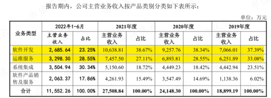 公司主营业务分为软件开发、运维服务、系统集成、软件产品销售及服务四类。