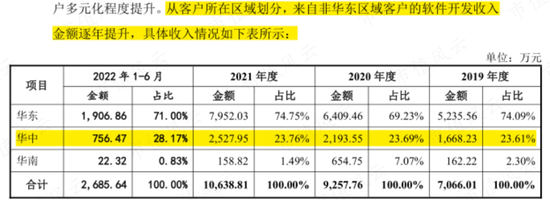 而在2019-2020年,华中地区客户的软件开发收入超过2000万元,占营收的比重从2018年的0%,骤升至20%以上。