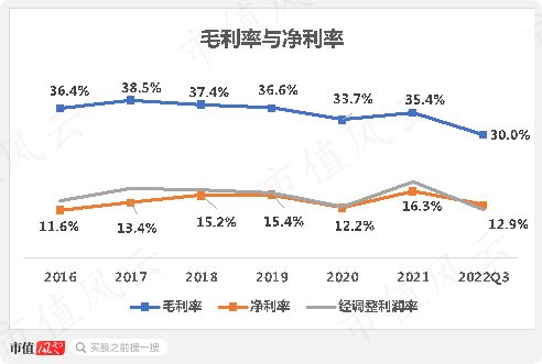 公司净利率走势与毛利率基本一致,2022年前三季度为12.9%。