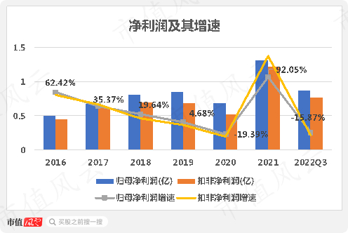 2017-20年,公司盈利情况也是不温不火,2021年迎来好转,归母净利润上升至1.3亿,同比增速为92%。