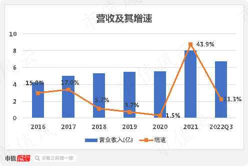 2022年前三个季度,公司营收6.6亿,同比增11.3%。
