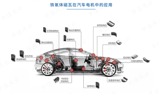 产品的下游场景主要应用于汽车、家电、电动工具和健身器材等行业。以汽车为例,从雨刮器、四轮驱动到座椅、冷凝器、电机都可以用到湿压磁瓦,豪华型轿车基本要配备近百台小电机。
