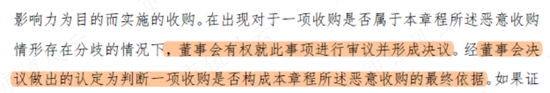 当其中在存在分歧时,董事会有权审议并形成决议,这也是判断一项收购是否是恶意收购的最终依据。