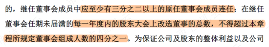 同时,《公司章程》对董事改选也做出新的规定,比如:改选时,原董事应至少有2/3连选连任;每年改选的董事不能超过1/4等等。