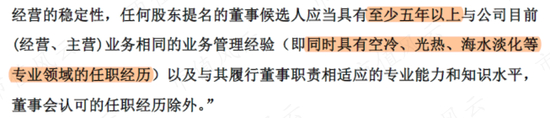 当然,这还不算完,还需要找到几名董事候选人,有5年以上与公司主业相同的管理经验。注意,这里的用词是“同时”具备空冷、光热、海水淡化等行业任职经历。