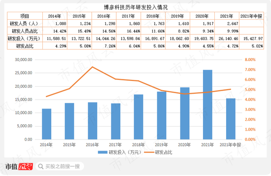 2021年,其研发投入达2.6亿元,其中绝大部分都费用化。长期看,该公司研发资本化的比例基本控制在10%以内。
