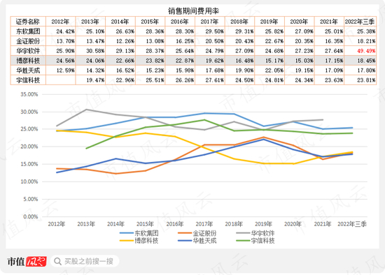 华宇软件的期间费用率较高,尤其是2022年三季度,飙升至49.5%,吞噬掉大部分利润。