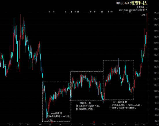 博彦科技的股价从2023年1月3日开始上涨,截至2月14日的区间涨幅接近50%。