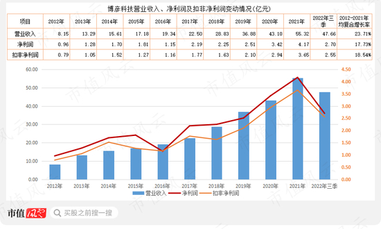 博彦科技在“内生增长+外延并购”的模式下,营收从2012年的8.15亿元,增长到2021年的55.32亿元(连续9年增长),年均复合增长率接近24%。