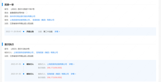 此外,今年1月,览海控股还曾新增执行案件,执行标的约2.06亿元。企查查显示,该案涉及览海控股与徐州农商行之间的金融借款合同纠纷。