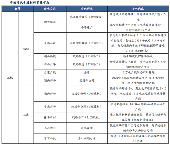 对于负极材料、隔膜、电解液、辅材等,宁德时代也是能投资就能投资,能合作就合作。