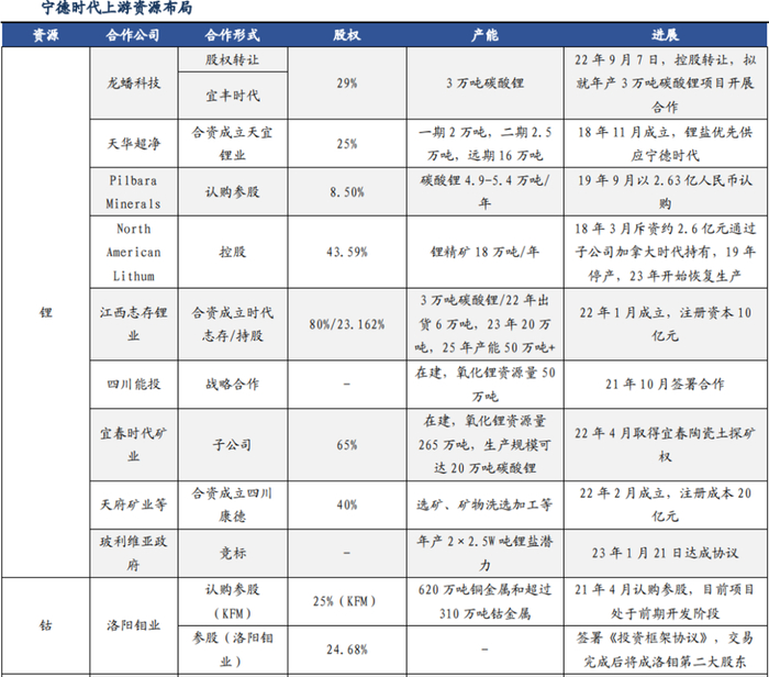 从最上游的锂矿、钴矿资源来说,宁德时代可谓“有锂走遍天下”。