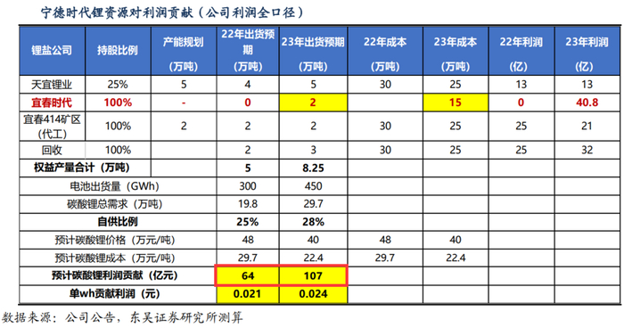 对于上游锂资源的控制,不仅实现了对中游正极材料企业的影响甚至股权投资,也让宁德本身攒够了足够的筹码。打仗,毕竟是要花钱的。2023年,宁德时代仅来自碳酸锂的利润贡献,就有望实现百亿级别。