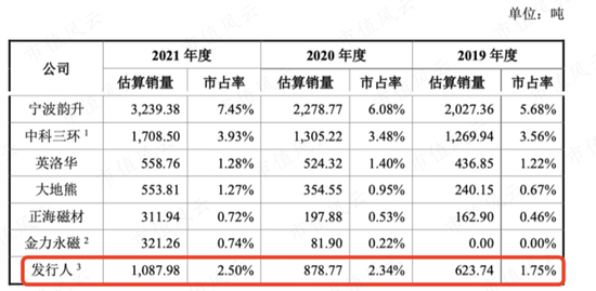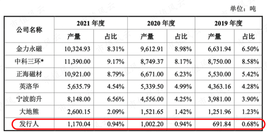 永磁铁氧体磁体的市场份额,中科磁业是远低于横店东磁和龙磁科技两家上市公司的。